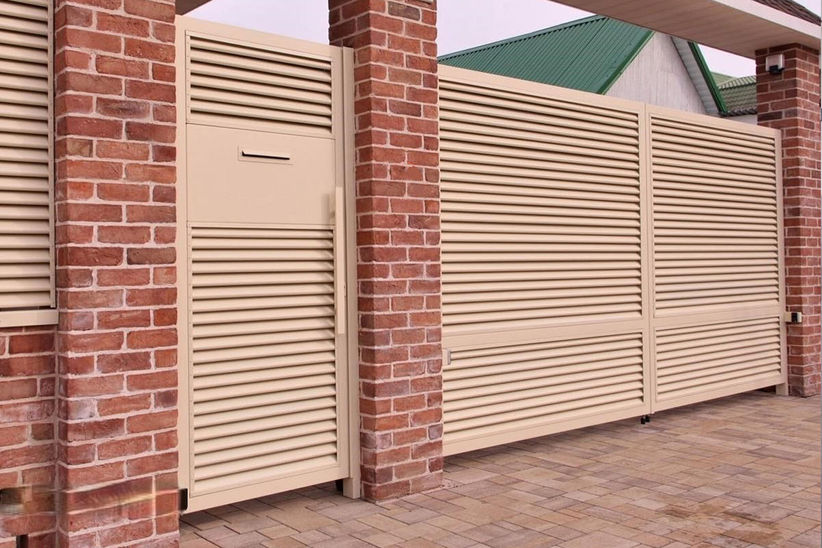Unsere Jalousien-Zäune bestehen aus separaten Metallamellen, die schräg am C-Profil montiert werden und ähneln einem modernen Zaun mit Jalousien. Neugierige Nachbarn werden nicht auf Ihren Grundstück schauen können, gleichzeitig sieht der Zaun selbst modern, elegant aus und lässt das notwendige Sonnenlicht und die Luft durch. Dank des stilvollen, modernen Designs können Sie den Jalousiezaun an allen Objekten installieren: Privathäuser, Schulen und Stadien, Erholungsgebiete und Sportplätze, öffentliche Gebäude, Fabriken, Lagerhäuser usw.
